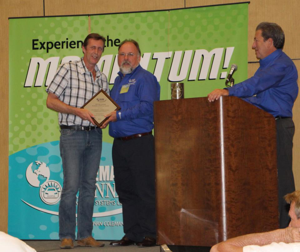 In diesem Jahr konnte Norbert Grap, Geschäftsführer von GPS Service, den Hanna Silver Award For International Sales entgegennehmen. Überreicht wurde diese Auszeichnung durch Ed O’Hanrahan, der Coleman Hanna Carwash Systems seit Oktober 2012 gemeinsam mit Russel Coleman (rechts im Bild) leitet. Dieser Preis wird für Verkäufe und Installationen im jeweiligen Vertriebsgebiet des Vertreters vergeben. Die goldene Auszeichnung wurde an Australien, die bronzene dem japanischen Vertreter überreicht. |